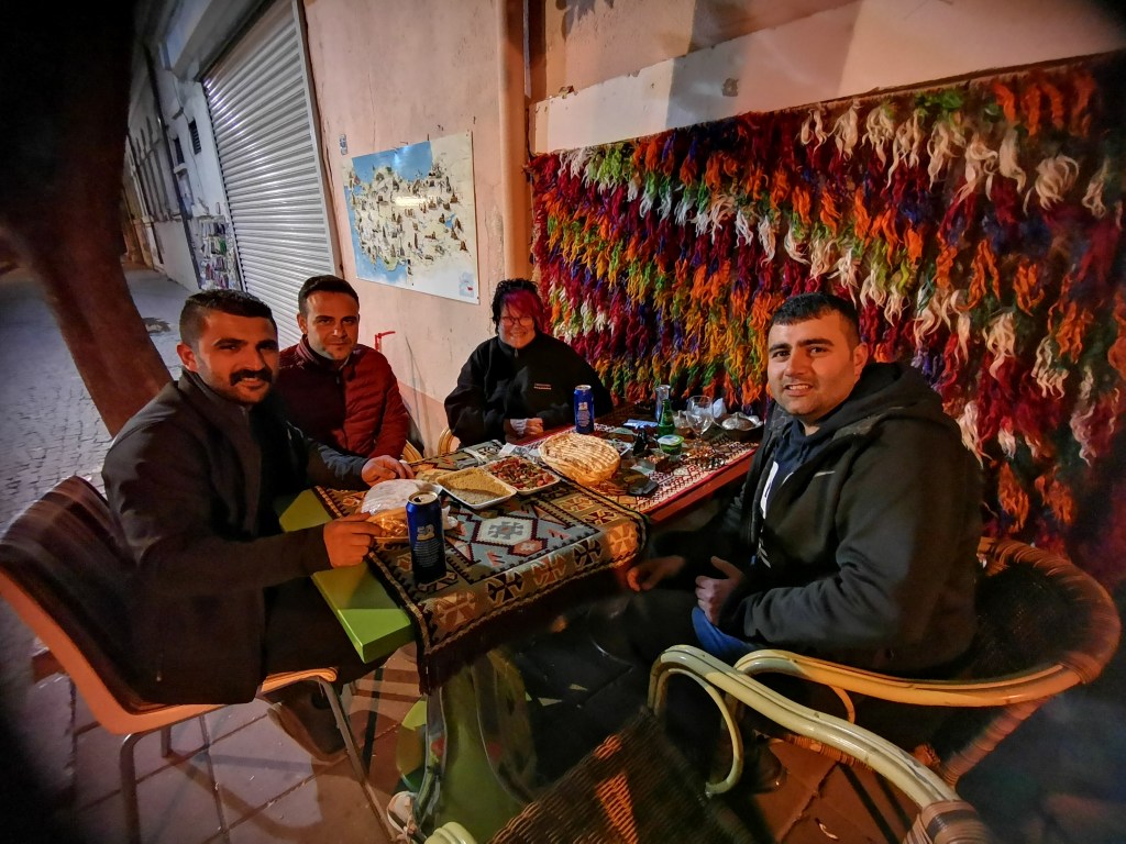 Après une longue journée de marche et de découvertes, sur le chemin du retour, près de mon auberge de jeunesse, un vendeur m’interpelle. Bô, personne ne m’attend chez moi (faute de maison), je me prête au jeu et m’arrête un moment. Ils sont trois turques et me proposent un thé à la pomme. Je m’assied, nous commençons à discuter. Alors que je m’apprête à prendre congé, Ibrahim me demande si j’ai mangé. Hayıt. Ils m’invitent à dîner avec eux, la mère d’Ibrahim a préparé un repas que nous allons partager dans la boutique.