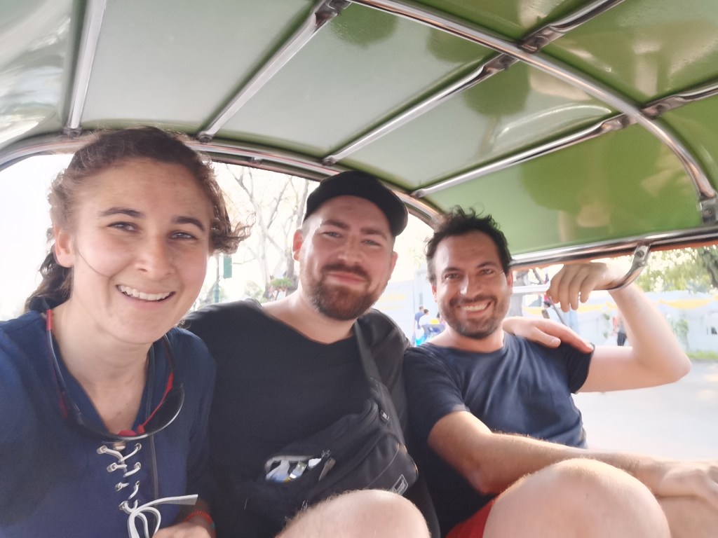 Puis nous avons pris un tuk tuk, à plusieurs, on peut diviser les frais de transport, et les distances sont grandes ici. Visite de deux petits monuments et, à savoir, vous serez obligés de vous arrêter dans un magasin chicos vendant des tissus, pendant minimum 10 minutes, afin que le chauffeur du tuk tuk se voit tamponner un timbre qui lui rapportera de l’argent.
