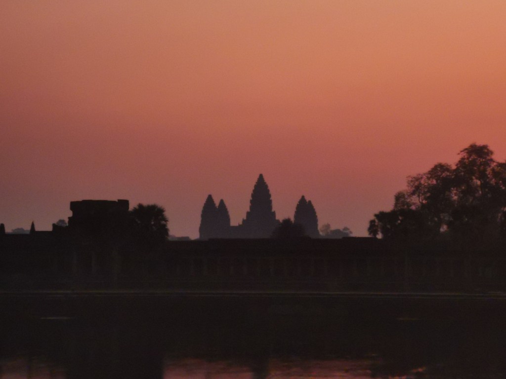 Les prémices de l’aube apparaissent et la magie s’opère. Comme dans un rêve. Il surgit, de face, surprend le regard encore groggy de sommeil. Elle se détache en ombre chinoise, cette Merveille, la huitième de ce Monde semble-t-il. Angkor Wat.