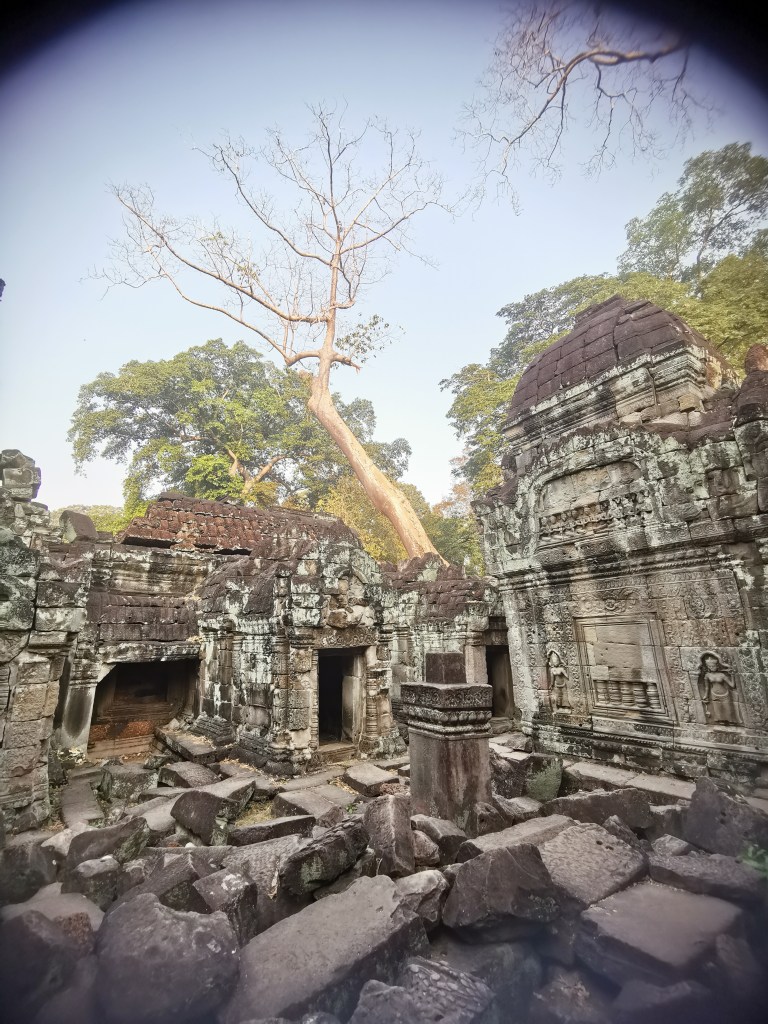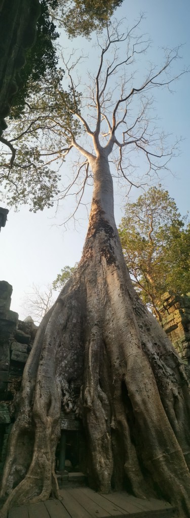 Ce terrain de jeu est considéré comme un des plus beaux sites archéologiques du monde. Ta Prohm ❤️❤️❤️ le confirme. Laissé en l’état, sauvage, envahi, dominé par ces arbres centenaires Tetrameles nudiflora, grandioses et immenses, le spectacle est ravissant. Ce monastère du roi, ou Old Brahma, a été rendu célèbre par les films Indiana Jones et Tomb Raider. Mais pas pour sa nature de monastère et d’université bouddhiques…