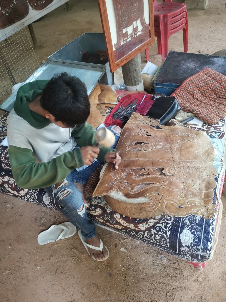 Ta Som est une escale. Ce temple permet de rencontrer ce « sculpteur de cuir », un métier courant ici pour ravir certains touristes.