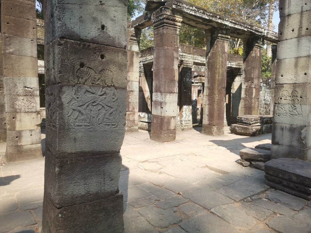La citadelle des chambres monastiques est belle. Ses petites tours, sa salle des danseuses, l’on s’y croirait presque. Les ruines de Bantheay Kdei ❤️❤️ ramènent tout de même à la réalité de notre temps. Elles ont cependant un côté artistique. Cet empilement de pierres qui semble branlant et pour lequel l’on se demande comment l’édifice tient encore debout.