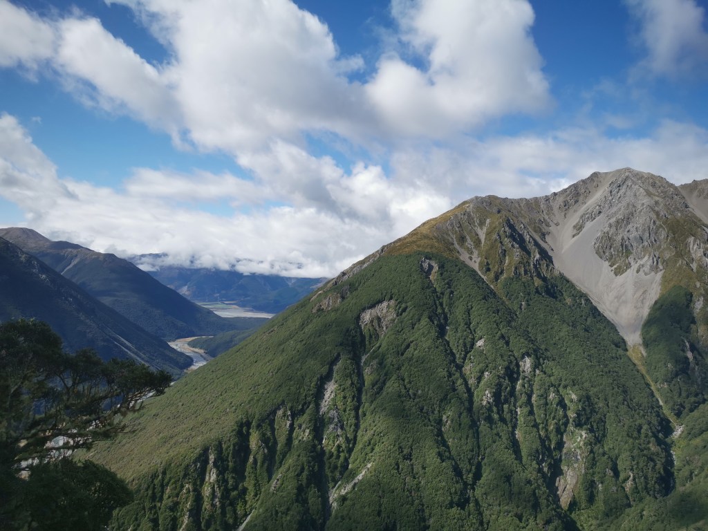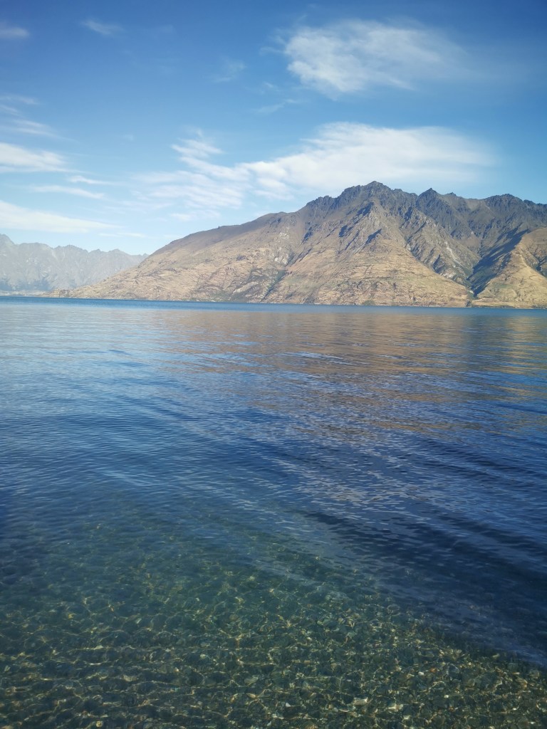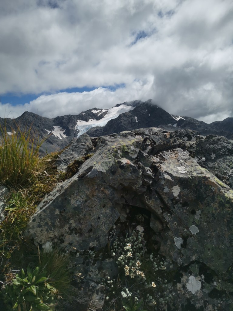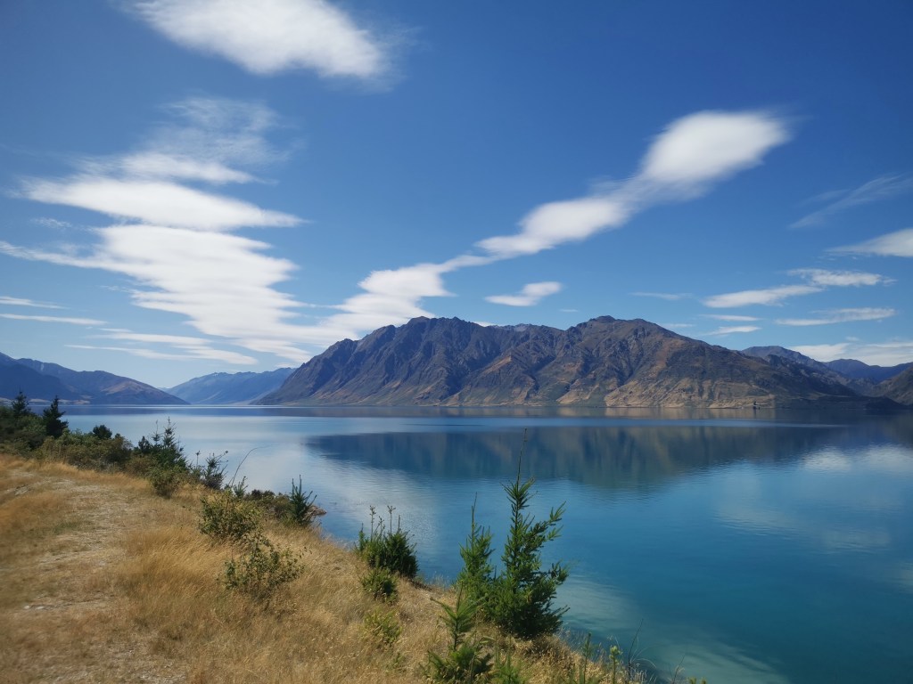 Le soleil était tout juste apparu que les nuages le cachait déjà. Il était temps de repartir. Quel bonheur de gravir ces mille soixante dix-huit autres mètres de dénivelés. Et quel spectacle ici-haut !! Des monts de partout. Tantôt au marron de la lande, tantôt recouvert d’arbres épineux, ou encore prêtant leurs cimes à des glaciers. Et le lac Wanaka, sublime et envoûtant…