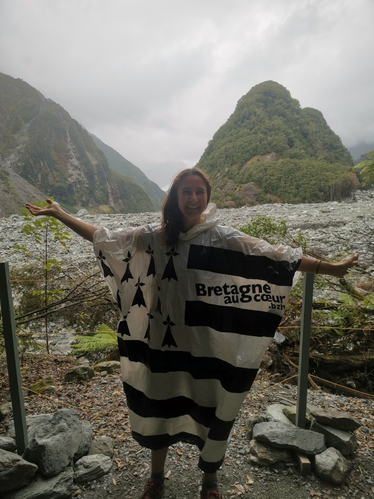 Et heureusement, car les nuages, chargés de pluie, arrivèrent à bonne allure. Elle enfila donc son vêtement de pluie et eu plusieurs remarques au fil de la journée telles que « vive les bretons !  » ou « oh un drapeau breton ! ». C’était rigolo.