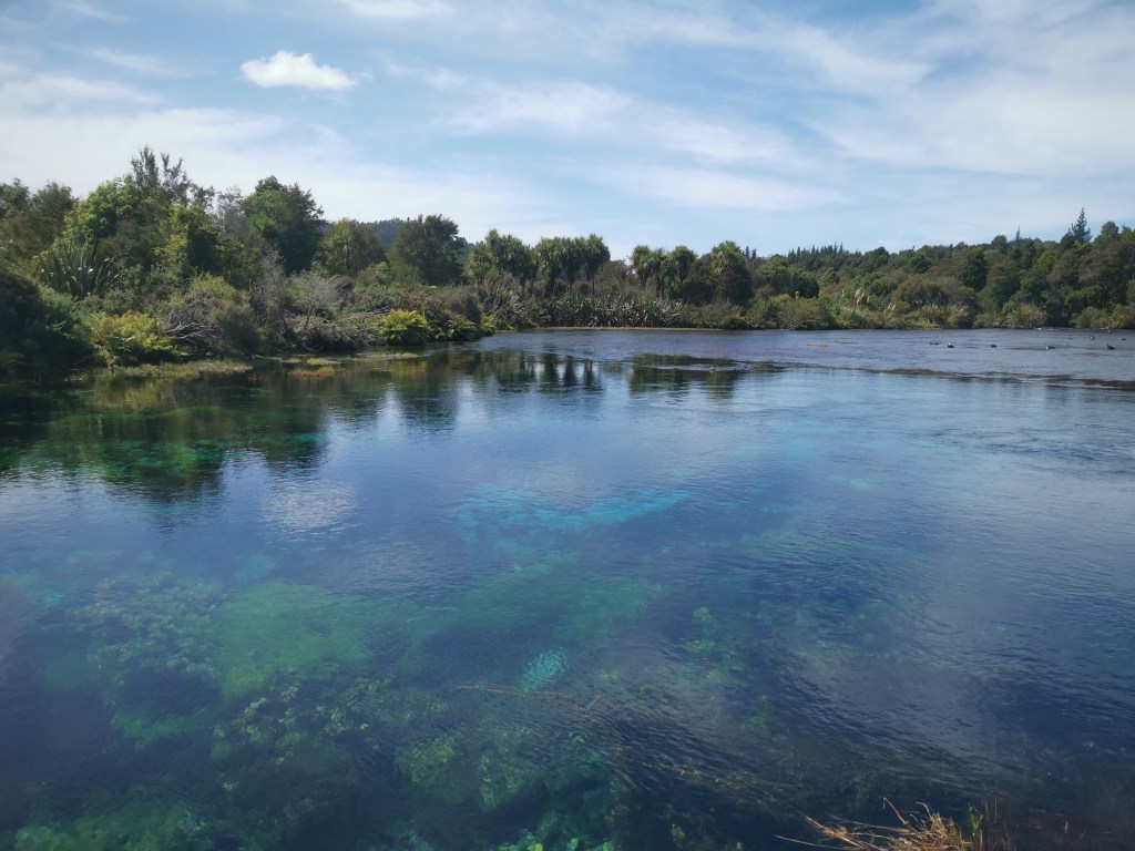 Elle s’arrêta, en chemin, contempler les Waikoropupu Springs. La géologie, le relief, les précipitations, le temps, la chimie et la pression de l’eau sont les ingrédients pour créer cette magie. En effet, ces sources comptent parmi les plus claires du monde. Elles paraissaient si pures et claires à cette aventurière qu’elle pris le temps de les contempler, pour se ressourcer. Ce bleu, comme l’eau nous apparaît dans une piscine, est le résultat d’une filtration naturelle des micro-organismes. Les animaux y sont heureux ici. Et les yeux de la voyageuse l’étaient tout autant ! C’est une Wahi Tapu, un lieu sacré, pour les maoris. Les eaux de la vie de Te Waikoropupu représentent l’élément vital de Papatuanuku, la mère Terre, et les larmes de Ranginui, le père Ciel.