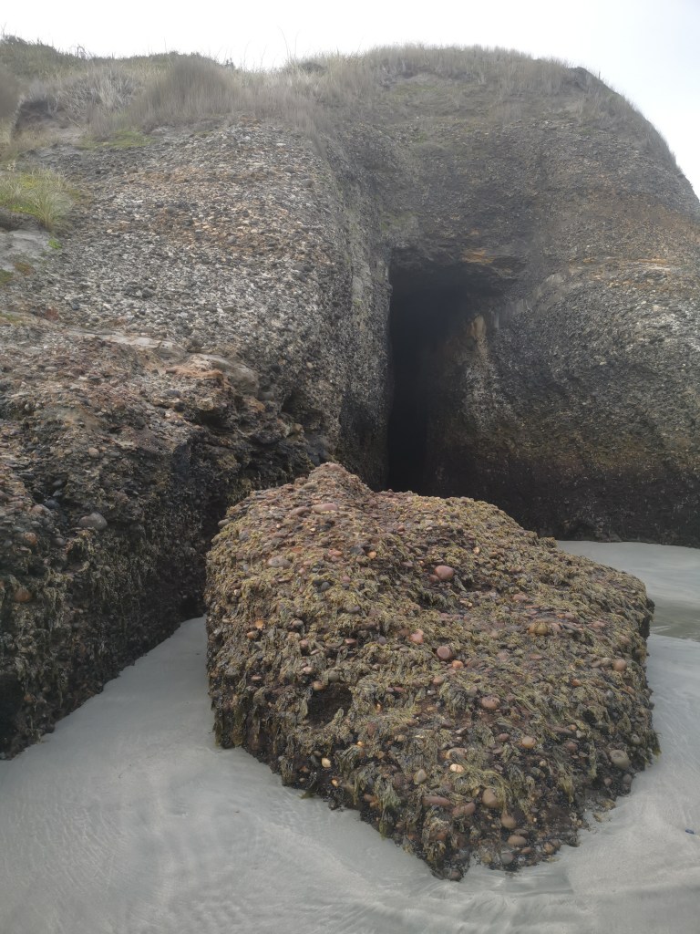 La falaise était incroyable, formée de multiples galets, et souvent creusée de tunnels où la mer s’engouffrait.